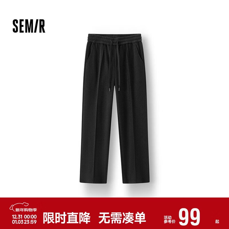森马(Semir)休闲裤男秋宽松弧形弯刀裤25长裤垂感松弛感抽绳裤子10A525127102