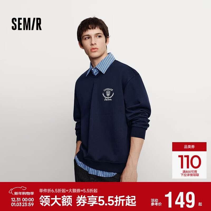 森马(Semir)卫衣男冬季学院风假两件情侣装加绒2025oversize绣花109725116202