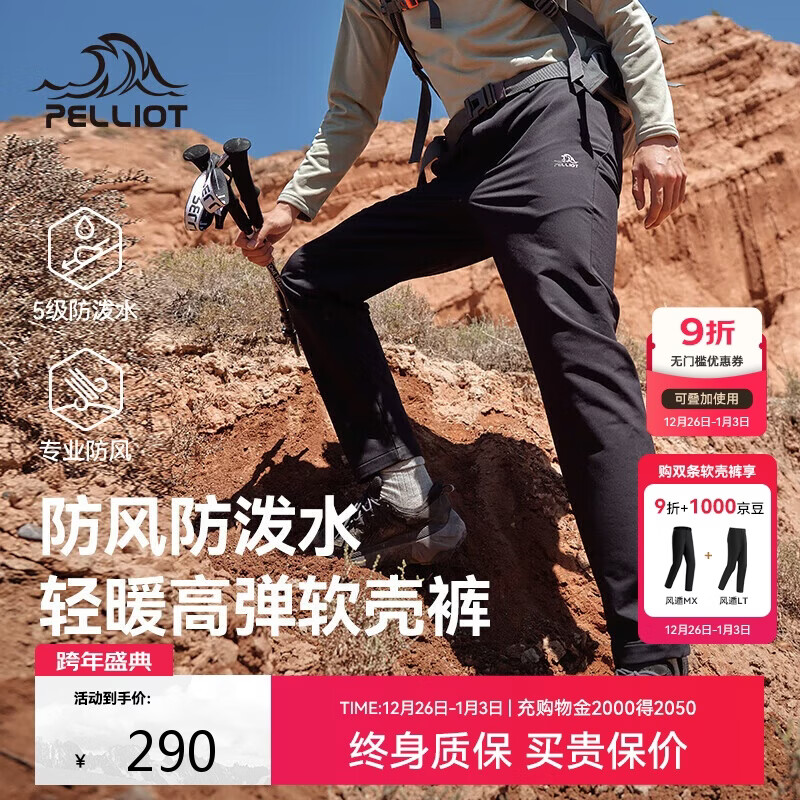 伯希和(Pelliot)【风遁LT】徒步软壳裤男秋冬加绒保暖高弹透气耐磨防风运动登山裤