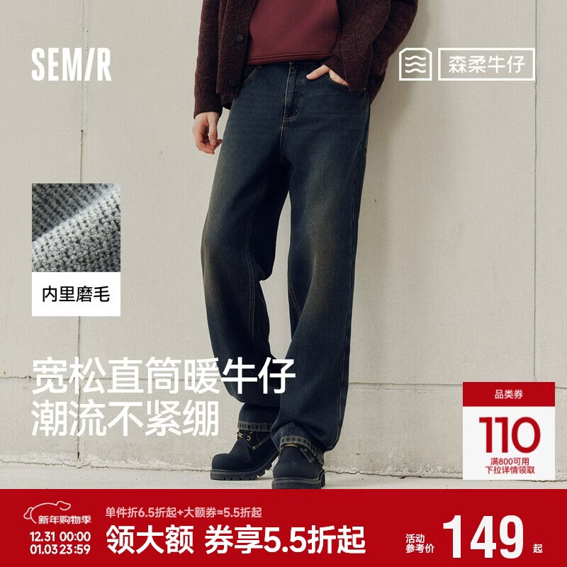 森马(Semir)牛仔裤男猫须做旧复古宽松直筒裤2025秋冬长裤子经典109725124103