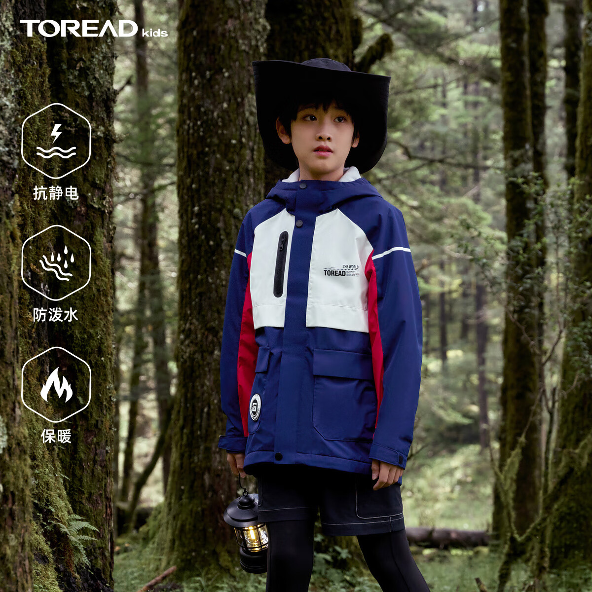 探路者(TOREAD)旗舰 儿童冲锋外套男女中大童装秋冬加绒衣 水手蓝本白朱雀红 160