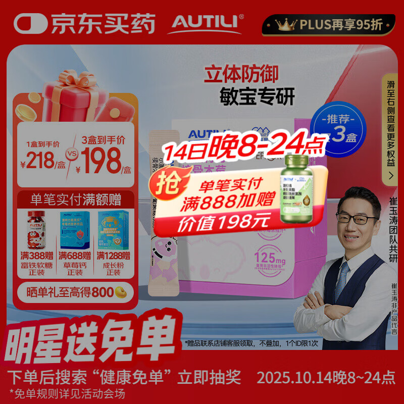 AUTILI澳特力【崔玉涛团队亲研】接骨木莓酵母β-葡聚糖儿童维C敏宝专研 20袋