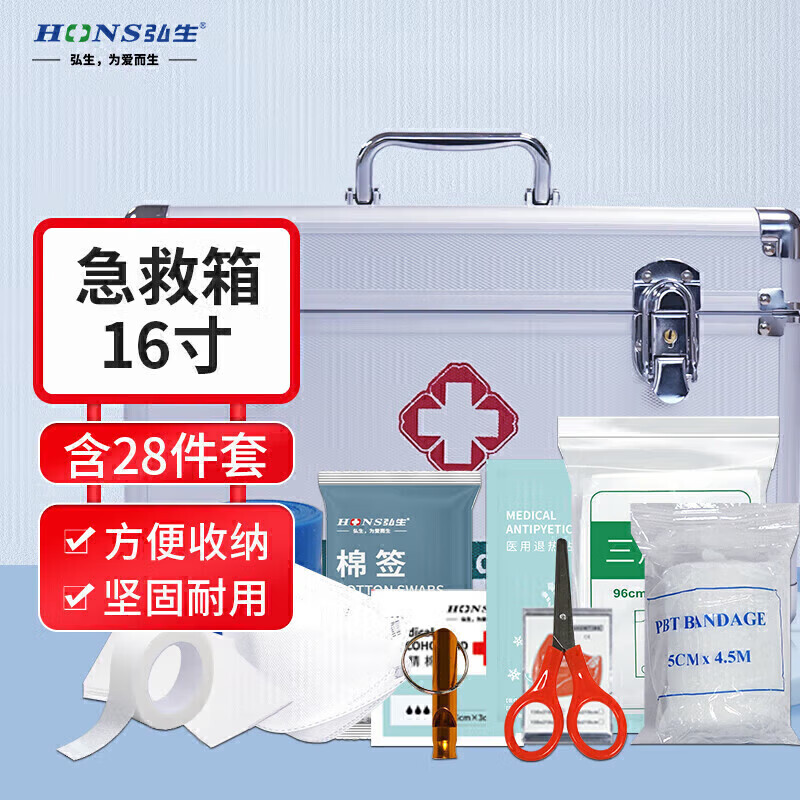 弘生医药箱应急箱急救箱出诊箱带锁铝合金医疗箱收纳箱家庭急救包16寸