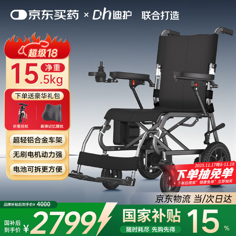 迪护电动轮椅车老人全自动轻便可折叠旅行专用智能超轻便携式代步1台