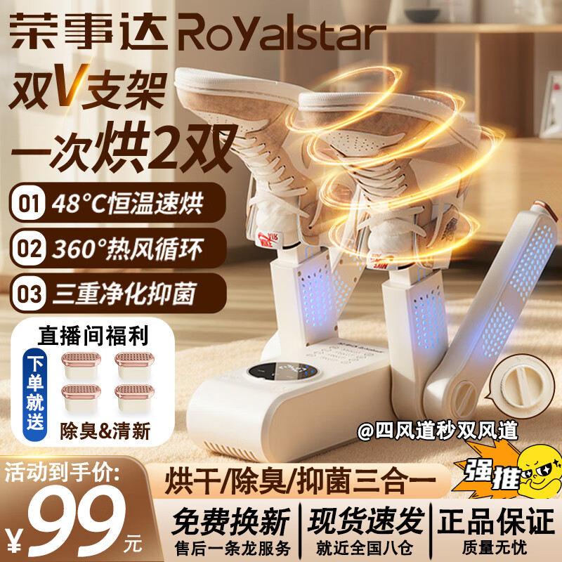荣事达烘鞋器鞋子烘干机器神器杀菌除臭干鞋器家用智能恒温烘鞋机烤鞋器烘干鞋器干湿两用哄鞋器臭氧杀菌 旗舰款【UV光除菌】四支架触控可伸缩+负离子玫瑰盐