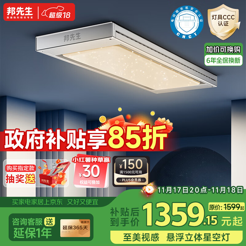 邦先生电动晾衣架隐藏式智能阳台晒衣架【M66PRO】星空灯+离线语音