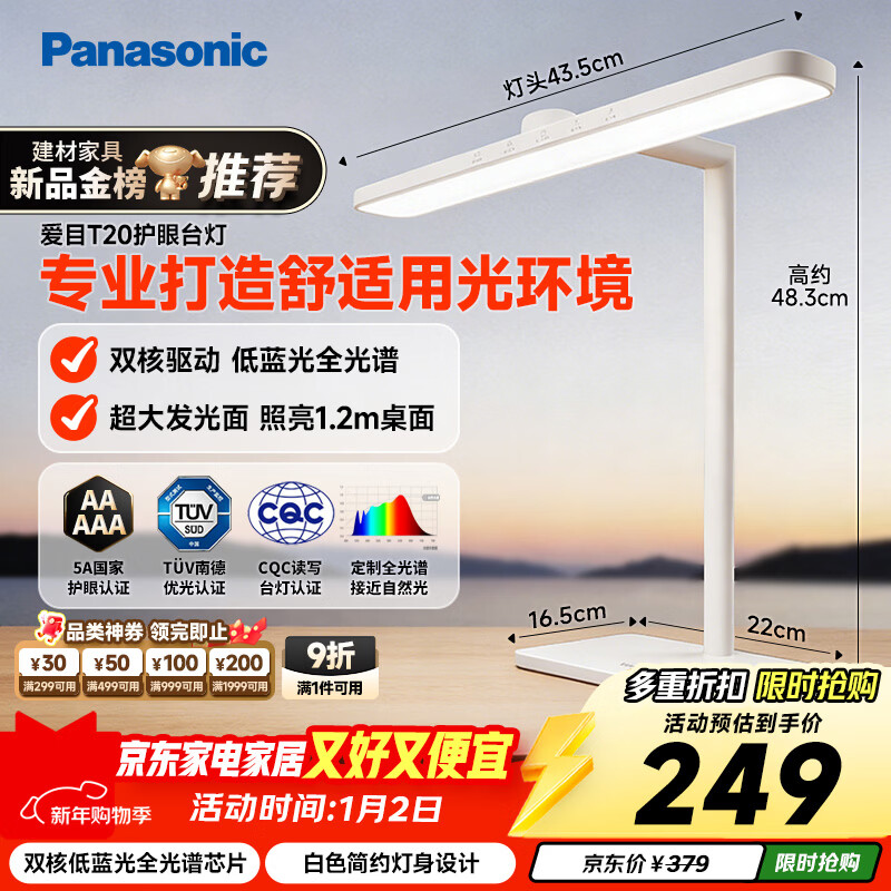 松下(Panasonic)护眼台灯 全光谱 AAAA护眼台灯 学习阅读台灯 HHLT0436