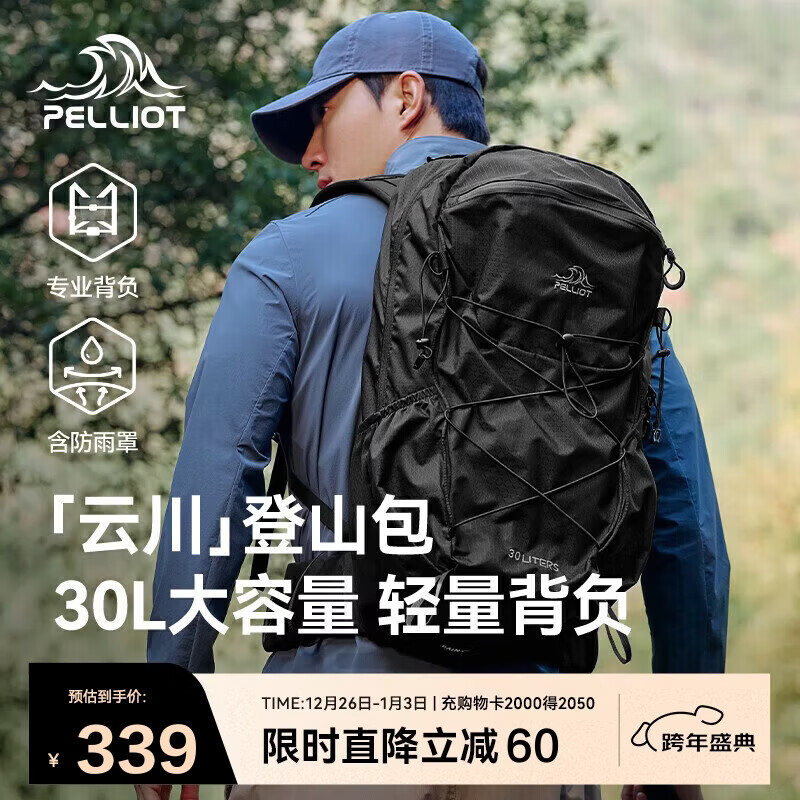 伯希和(Pelliot)云川户外登山包徒步专业背包旅行轻便双肩背包男165025040黑色30L