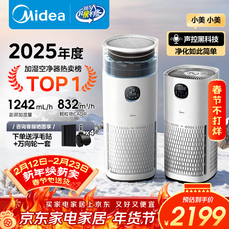 美的(Midea)【无雾加湿器】R8空气净化器加湿一体鼻炎家用甲醛数显除烟味异味过敏原吸猫毛空气净化机
