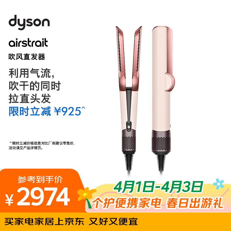 戴森(DYSON)Airstrait HT01 吹风直发器 干发直发二合一 吹风机 直板夹 夹板 礼物推荐 落日玫瑰色