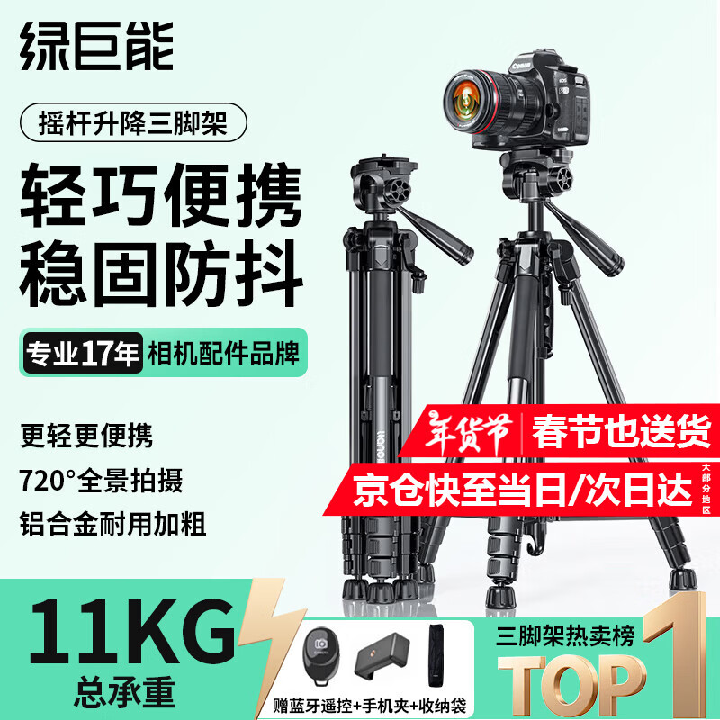 绿巨能(llano)相机三脚架单反微单手机摄像机专业级支架 适用大疆Pocket3富士尼康索尼防抖拍摄三角架 便携直播