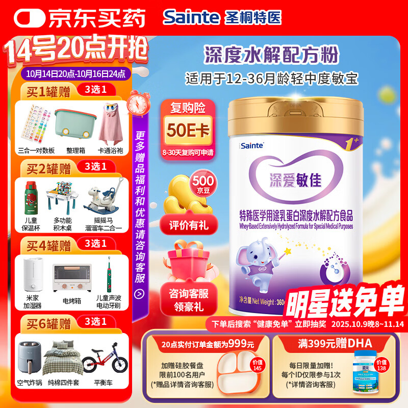 iSainte圣桐特医深爱敏佳360g 深度水解奶粉婴幼儿3段12-36月过敏宝宝