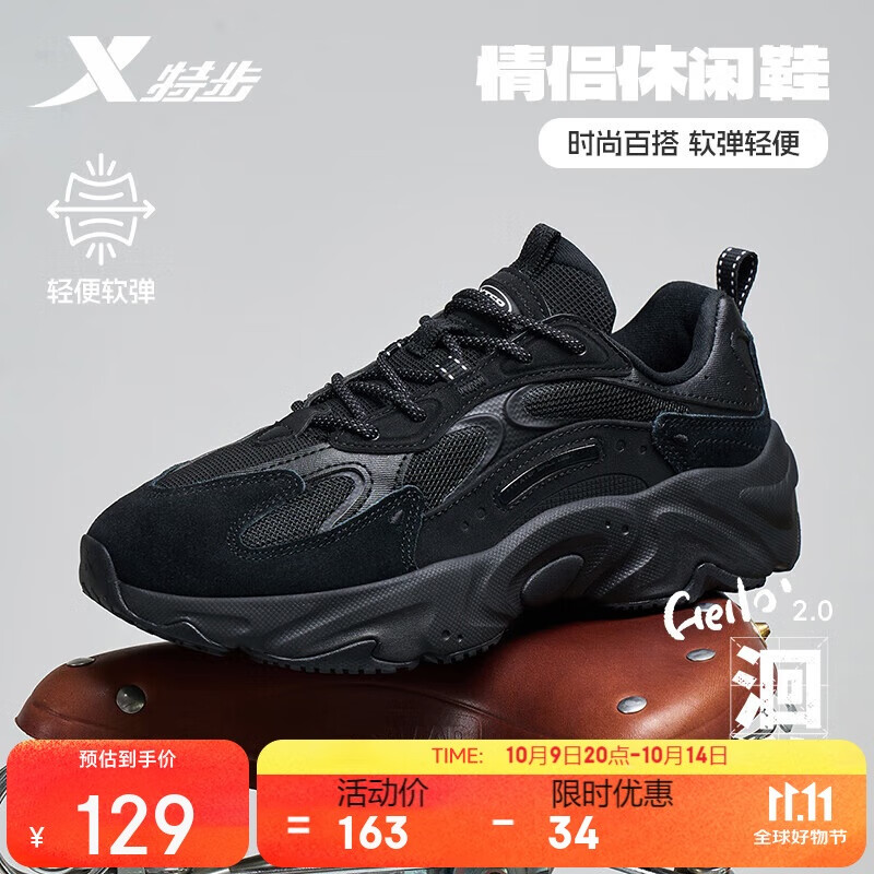 特步女鞋洄游2.0运动休闲老爹鞋秋冬保暖2025新款防滑耐磨增高百搭