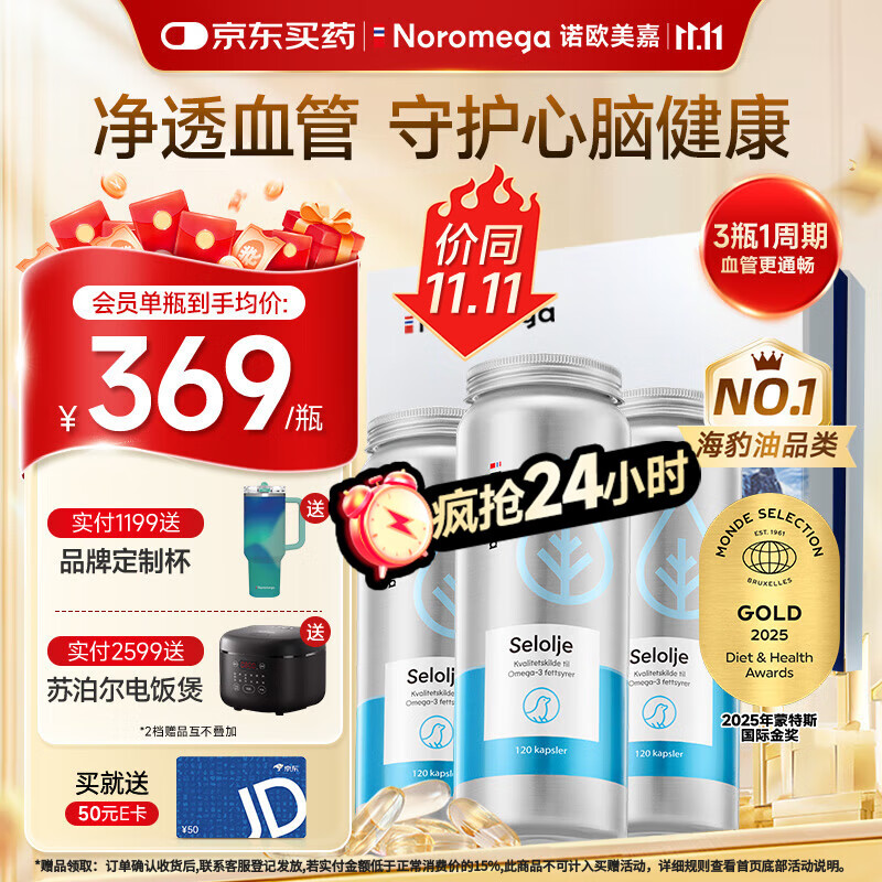 NOROMEGA海豹油胶囊礼盒 深海鱼油omega3心脑dha成人中老年降血脂120粒*3