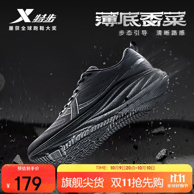 特步薄底香菜男子跑鞋运动鞋2025秋季网面轻便减震宽楦体测跑步鞋