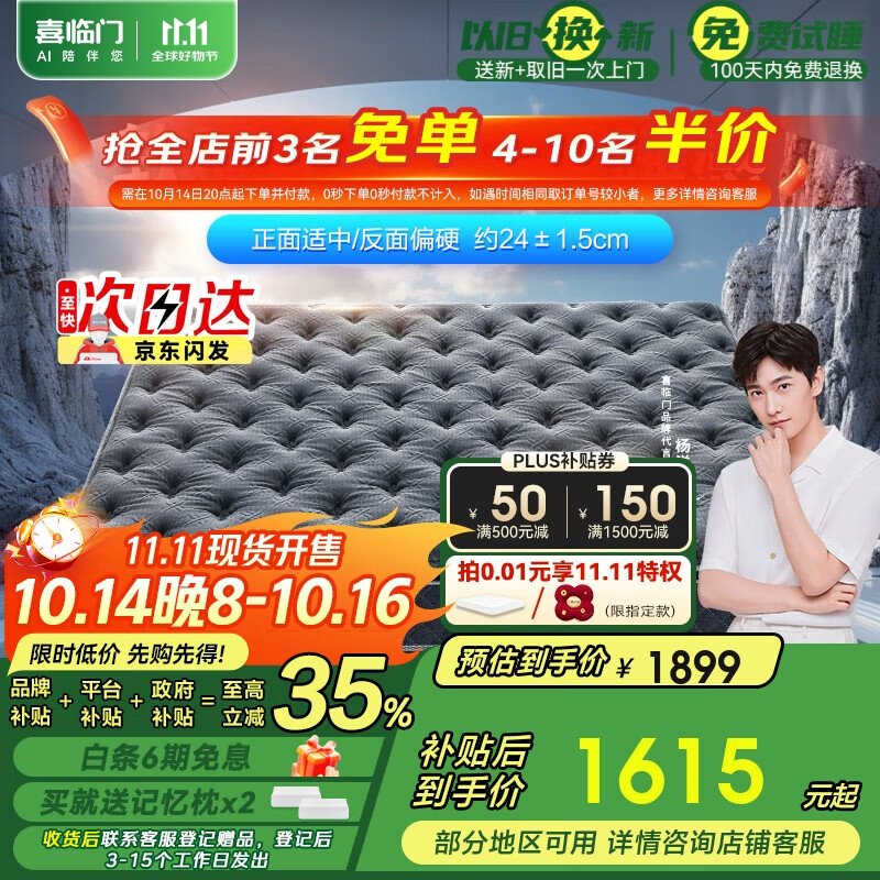 喜临门床垫 进口高纯乳胶 独立弹簧席梦思 金星knight 1.8x2米 双面可睡