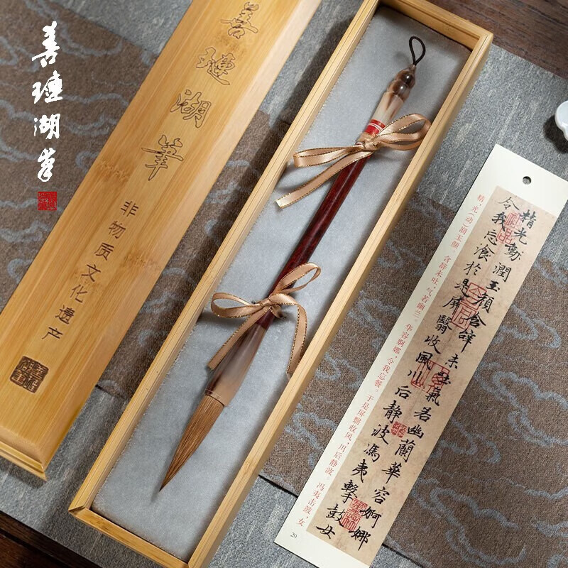 善琏湖笔狼毫毛笔套装兼毫羊毫 文房四宝小叶紫檀毛笔礼盒套装收藏礼品自用书法国画用具国庆中秋节礼物
