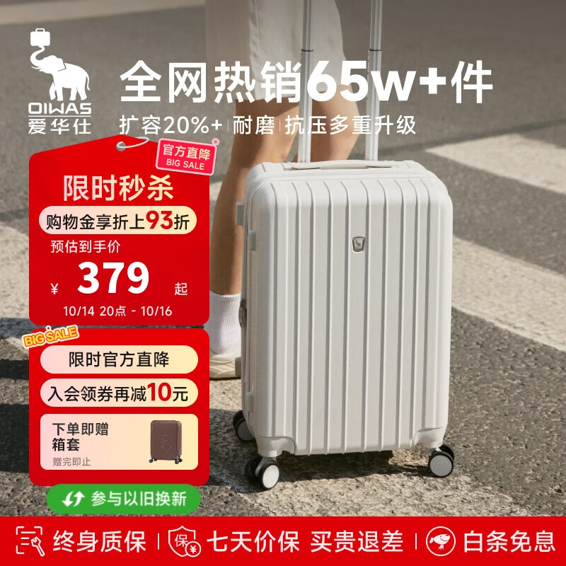 爱华仕行李箱男拉杆箱女大容量旅行箱24英寸万向轮密码箱可扩展箱米白色