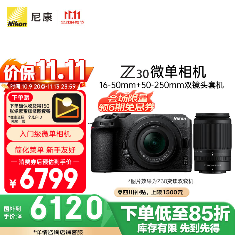 尼康(Nikon)【价保11.11】Z30微单相机 微单套机 无反相机 (Z DX 16-50mm+50-250mm )双镜头4K超高清视频