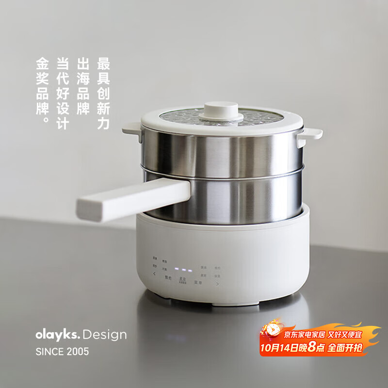 olayks立时 电煮锅分体式 2.5L不锈钢小电锅电饭煲小型1-2人学生宿舍多功能锅蒸煮煎炒锅泡面锅小钢灶