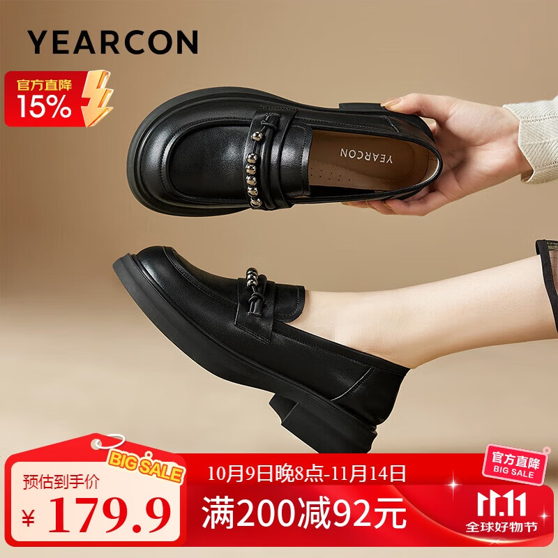意尔康小皮鞋女英伦风厚底增高舒适乐福鞋25春款 49861W 黑色3 37