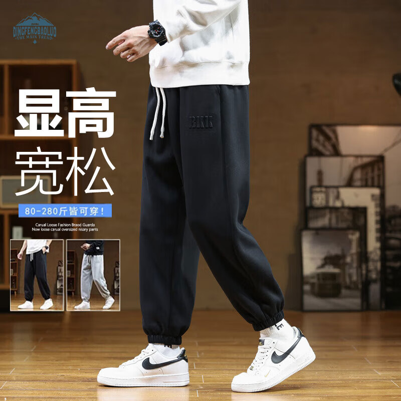 顶峰保罗(Dingfengbaoluo)休闲裤男秋季重磅潮牌宽松束脚时尚百搭运动卫长裤子HM9011黑色XL