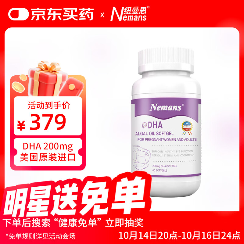 纽曼思(纽曼斯)Nemans海藻油DHA 孕妇和成人适用 60粒 原装进口