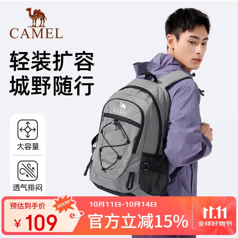 骆驼(CAMEL)户外轻便登山包专业徒步旅行旅游背包休闲运动学生双肩包 银灰色