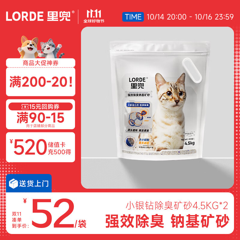 lorde里兜 小银钻猫砂钠基除臭矿砂膨润土自动猫砂盆可用4.5kg×2袋