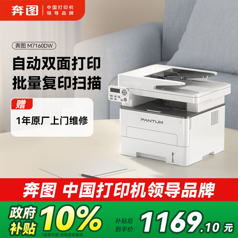 奔图(PANTUM)M7160DW激光打印机办公家用 自动双面打印机 手机无线 远程办公打印机 批量复印扫描一体机
