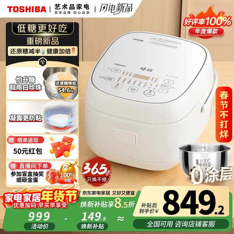 东芝(TOSHIBA)【旗舰爆款】白珍珠0涂层电饭煲4-5人无涂层316L不锈钢家用低糖电饭煲4升一级能效RC-15HOVC(W)