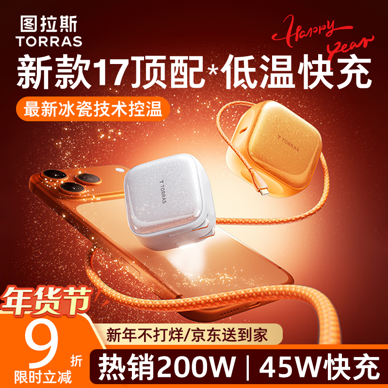 图拉斯苹果17充电器【2026年新款|45W顶配低温快充】iPhone17Promax充电头新年礼适配苹果17原装充电头16 【45W单头】星光白 最新款|顶配苹果17充电器|超低温不伤机