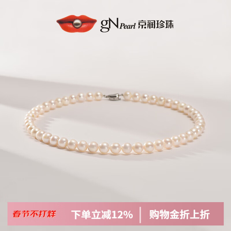 京润珍珠项链静婉淡水珍珠项链近圆有瑕大点位全珠链节日礼物 9-10mm 45cm 合金插棒扣