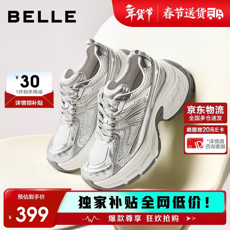百丽情人节礼物云鲸时髦设计老爹鞋女26春新厚底鞋JD018AM6 银色 37