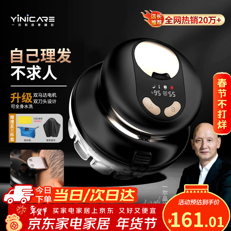 一尔自助理发器新品升级款理发神器自理发器家用男士剃光头寸头圆头全身水洗懒人飞碟理发器YLF-109