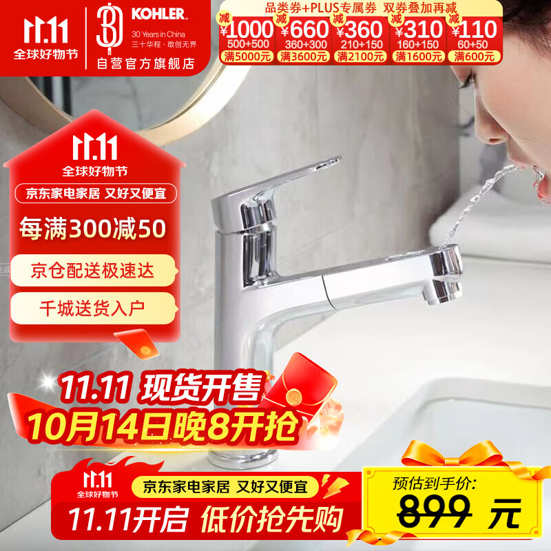 科勒(KOHLER)面盆龙头洗手盆冷热水龙头卫生间浴室柜抽拉式洗漱口龙头33070T