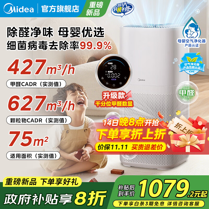 美的(Midea)森林家空气净化器Air4 家用除甲醛除菌除异味除过敏原甲醛传感器实时监测国家补贴 【母婴认证优选】KJ550G-YY