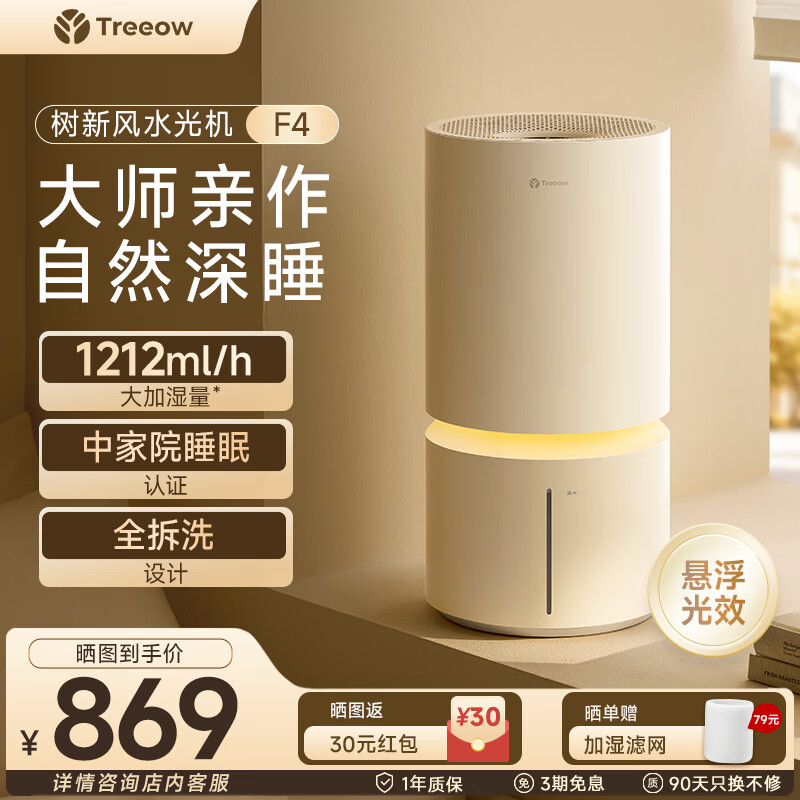 树新风【重磅新品】无雾加湿器家用客厅卧室桌面1212ml大加湿量全拆洗母婴幼儿静音除菌空气加湿器 F4