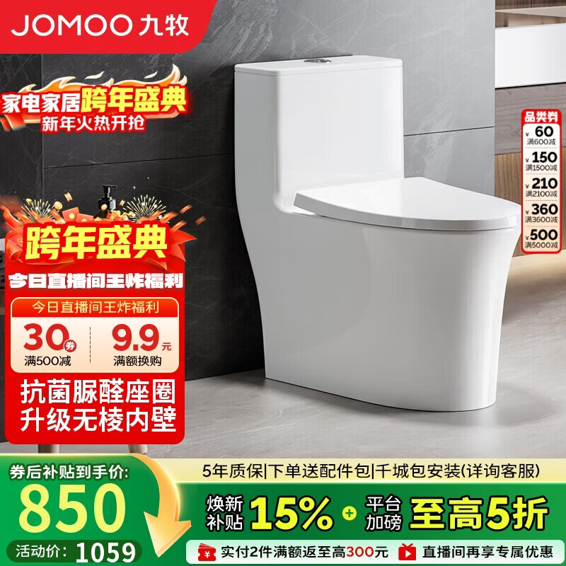九牧(JOMOO)11368-2-2/31KB-2马桶全包节水家用大冲力暴风虹吸坐便器305坑距
