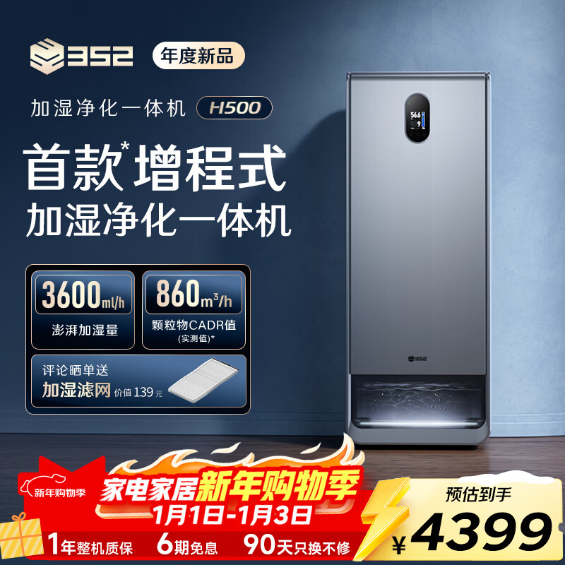 352【重磅新品】无雾加湿器空气净化器增程式加湿净化一体机家用客厅卧室除甲醛过敏原母婴认证 H500
