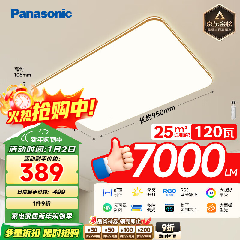 松下(Panasonic)室内吸顶灯120W 25㎡适用 7000lm 明畔棕超薄灯