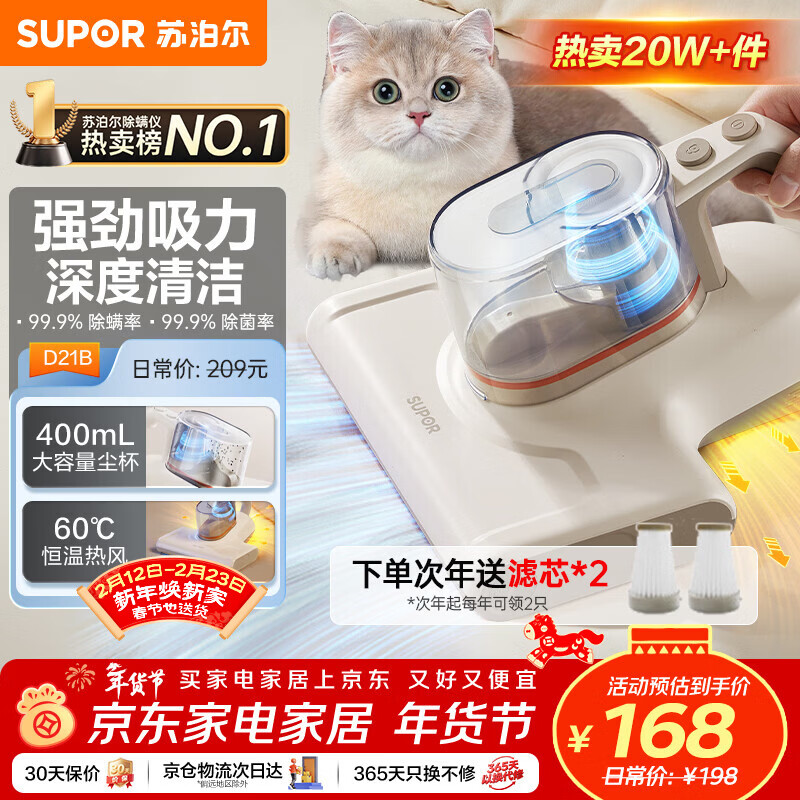 苏泊尔(SUPOR)除螨仪床宝性价比必入大吸力紫外线双震拍打床上高温杀菌热烘除湿双杯尘螨分离家用吸尘神器D21B