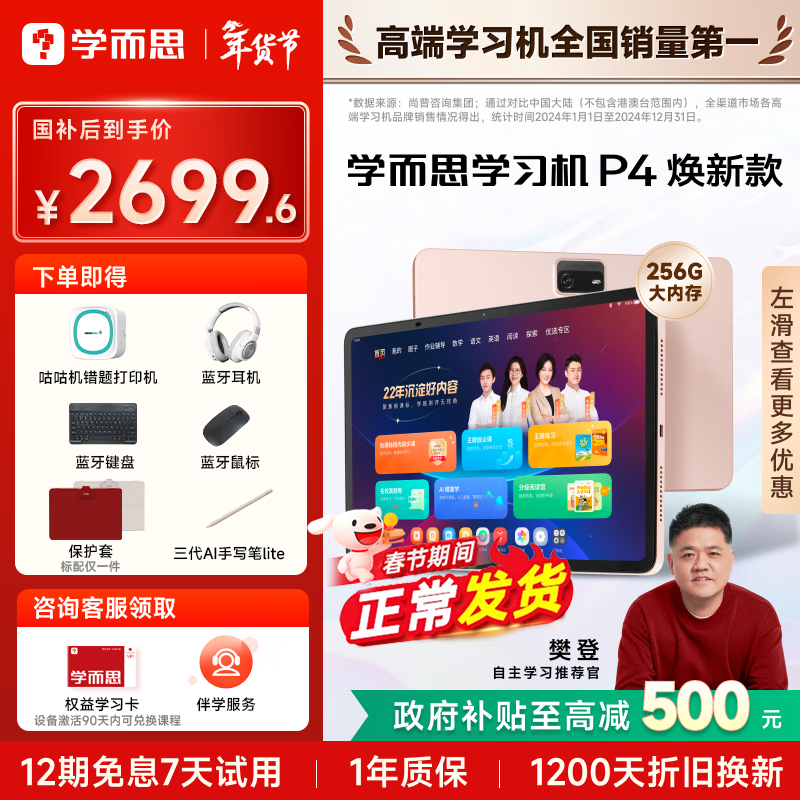 学而思学习机P4 AI学习机 护眼大屏 全学段 校内同步教材 九章大模型 支持deepseek 12.1英寸 【升级大内存】P4(6+6+256G)