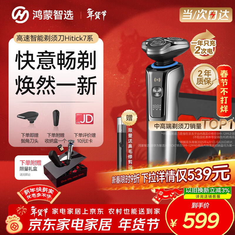 华为智选鸿蒙智选Hitick高速智能剃须刀7系银离子护肤男士电动刮胡刀送爸爸父亲送男友老公情人节年货礼物