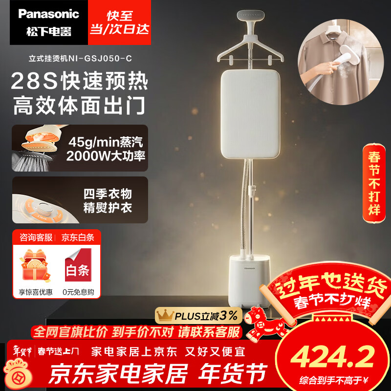 松下(Panasonic)立式挂烫机45g/min水箱3升【烫衣神器】高端手持熨烫机家用增压大蒸汽电熨斗高效除皱NI-GSJ050-C