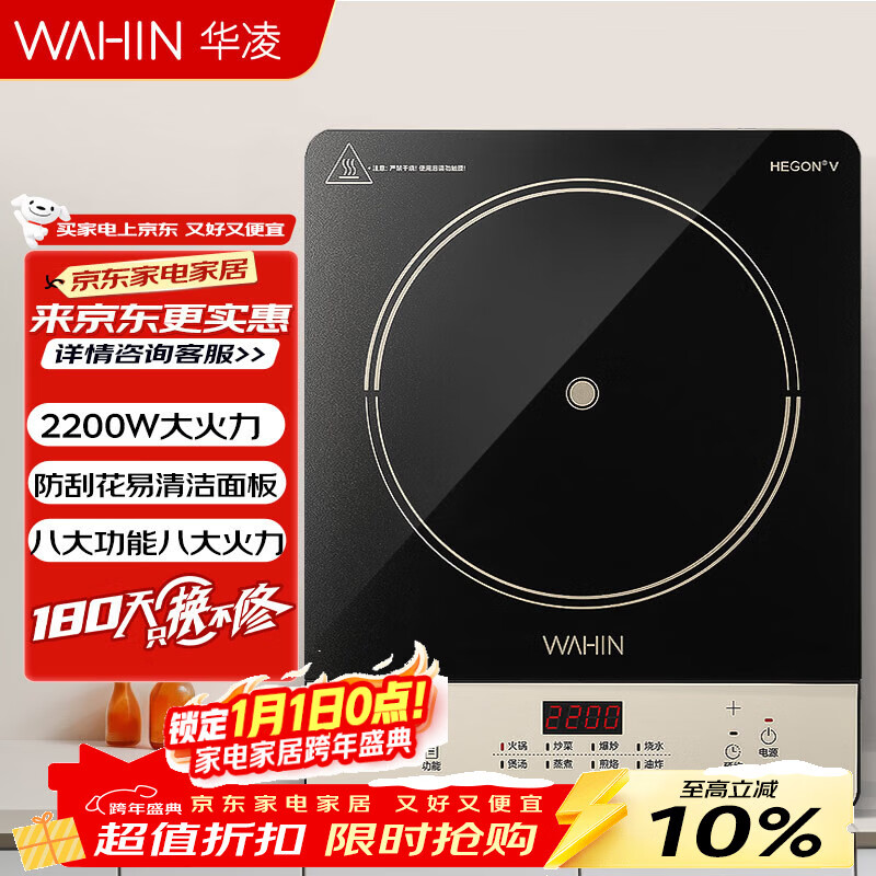 华凌美的出品 电磁炉 2200W大功率 广域匀火加热耐磨耐用面板 八档火力防水电磁灶火锅炉WH-E22F02