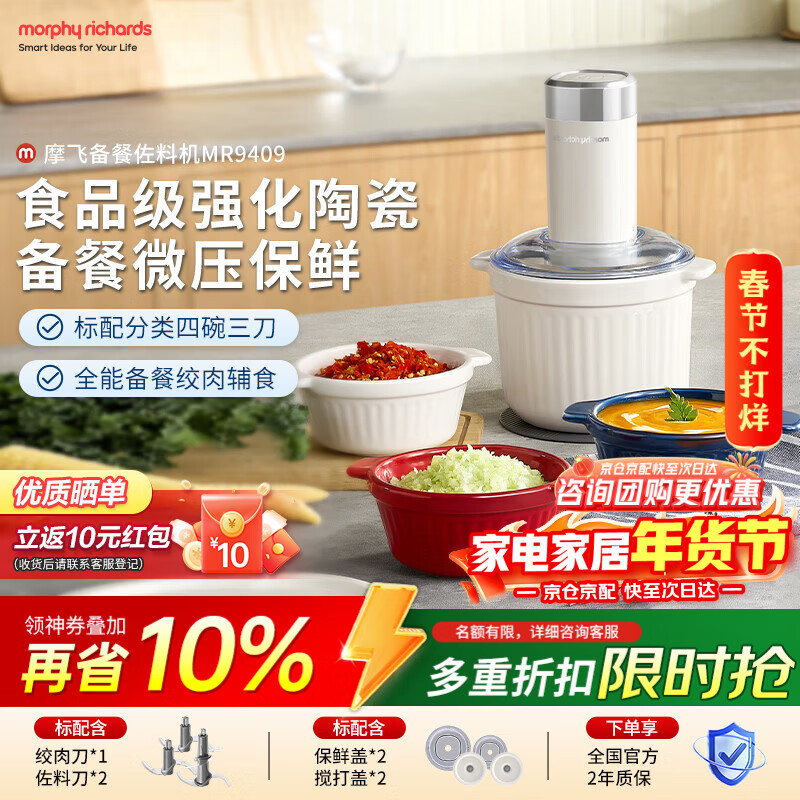 摩飞电器(Morphyrichards)绞肉机 家用佐料机辅食机 多功能备餐绞肉切菜机电动料理机捣蒜器 搅拌机绞馅机碎肉机 MR9409