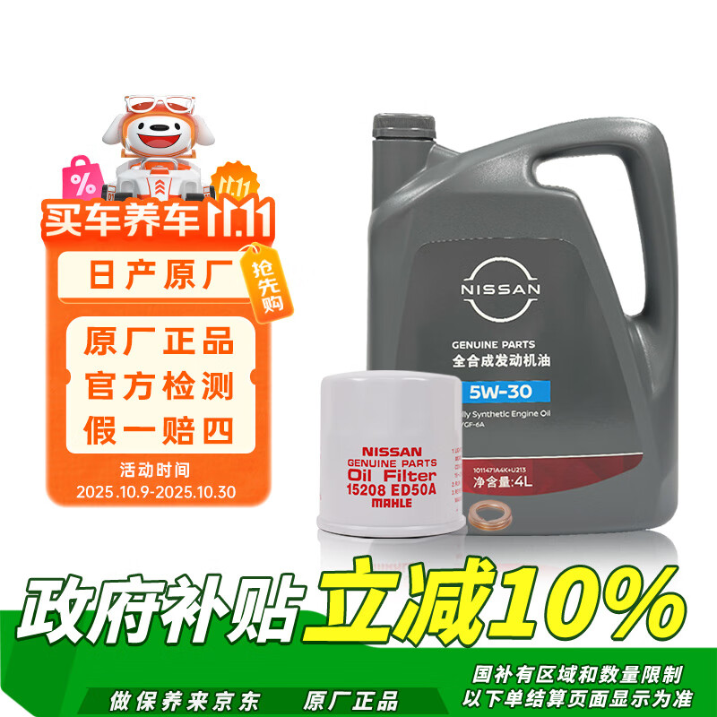 日产(NISSAN)日产 NISSAN原厂全合成机油5W-30 4L小保养套餐 (机滤+垫片)