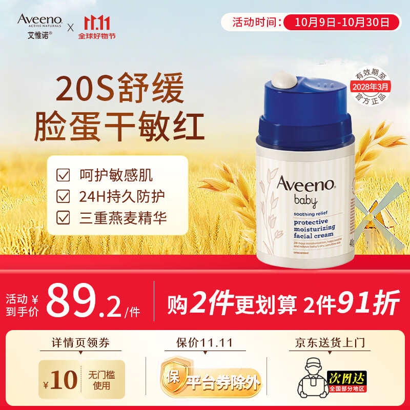 艾惟诺(Aveeno)韩国进口儿童面霜四季保湿艾维诺舒缓干痒红婴幼儿宝宝面霜 【敏宝推荐】小喷泉面霜48g