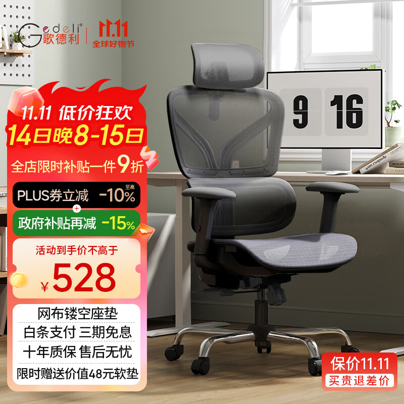 歌德利G22人体工学椅子电脑椅办公椅电竞老板椅人工力学座椅镂空黑